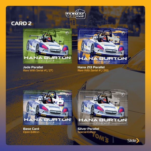 EAN: 4897138460051 SKU: TC-HA-01 Categories: Tarmac Cards, Trading Card Games Tags: Hana Burton, Honda, Tarmac Cards, Toyota