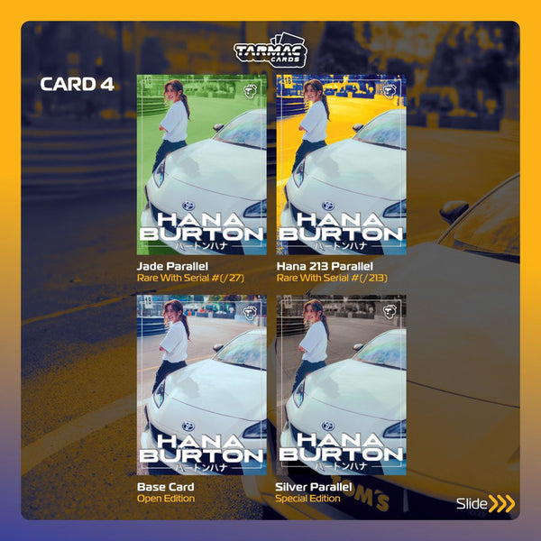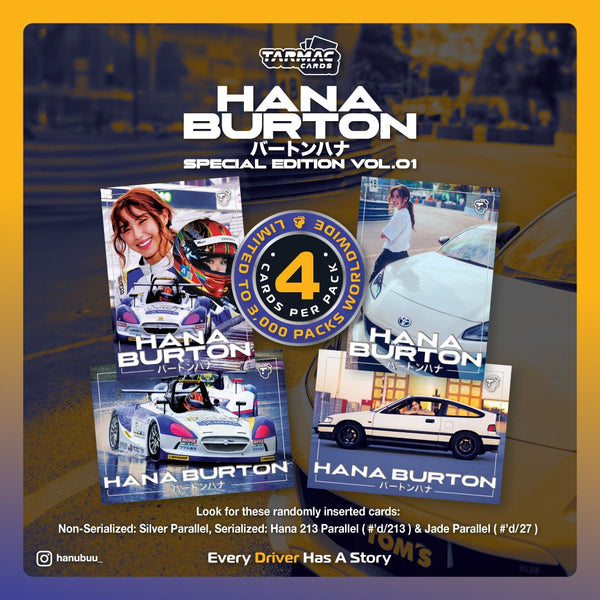 Descoperă primul set de cărți de colecție Hana Burton – Tarmac Cards Event Special Pack – Hana Burton Special Edition Vol.01! Această ediție exclusivă aduce în prim-plan pasiunea și estetica inconfundabilă a celebrului artist și designer auto, Hana Burton. Cu un tiraj extrem de limitat, acest set reprezintă o adevărată comoară pentru colecționari și pasionații de mașini.
